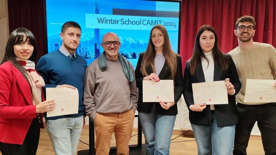 L’Unical ha ospitato la cerimonia conclusiva del percorso Winter School CAMIT, un’iniziativa formativa che ha visto un gruppo di studenti impegnati in un’esperienza di alto livello dedicata all’internazionalizzazione e alla valorizzazione delle eccellenze calabresi sui mercati esteri. L’evento è stato il culmine di quattro settimane di lavoro intenso, che hanno coinvolto i partecipanti in attività pratiche e accademiche orientate allo sviluppo di competenze manageriali e progettuali. In particolare, gli studenti provenienti dai corsi di laurea in Ingegneria Gestionale, Scienze politiche ed Economia Aziendale hanno avuto anche l’opportunità di lavorare due settimane a stretto contatto con i funzionari della Camera di Commercio Italiana in Cile a Santiago, coordinata dal presidente Luciano Marocchino e da Francesca Ragazzini (Segretaria della CAMIT) ed hanno così potuto costruire sul campo le competenze necessarie a risolvere il compito a loro assegnato.