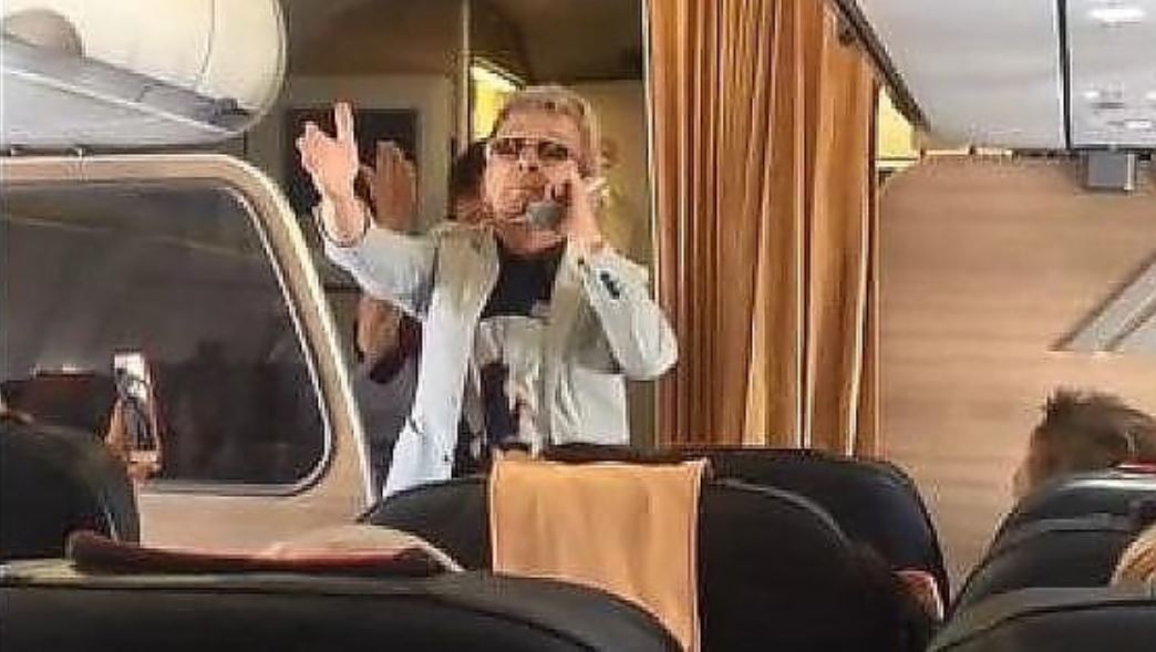 Sull’aereo Alitalia si erano scaldati gli animi per colpa di scambi di posto e ritardi. Il cantante, dopo qualche battuta in francese, si è esibito dal microfono delle hostess con uno dei suoi brani più celebri