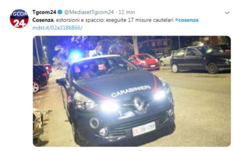 TgCom24: “Cosenza, estorsioni e spaccio: eseguite 17 misure cautelari”