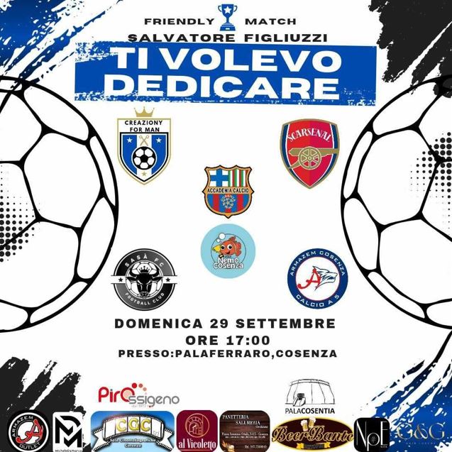 Salvatore Figliuzzi, era un ragazzo di 18 anni deceduto per un malore mentre stava giocando a calcetto con gli amici. A distanza di 5 anni, domenica 29 Settembre 2024, amici e parenti si ritroveranno al Pala Ferraro di Cosenza per una partita amichevole di calcetto