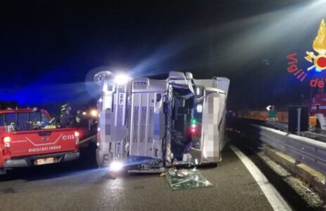 “Il Tir si è ribaltato allo svincolo Germaneto/Catanzaro Lido. L’intervento dei vigili del fuoco è stato finalizzato anzitutto a recuperare e salvare i capi di bestiame rimasti incastrati nel rimorchio cassonato: alcuni dei bovini tuttavia sono morti nell’impatto”