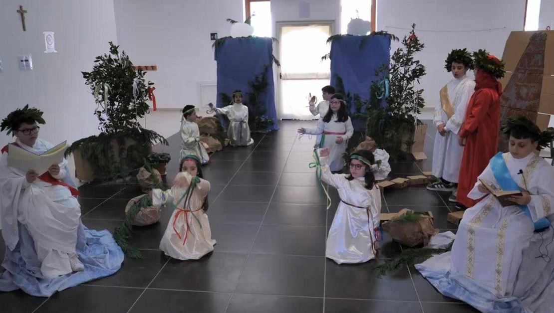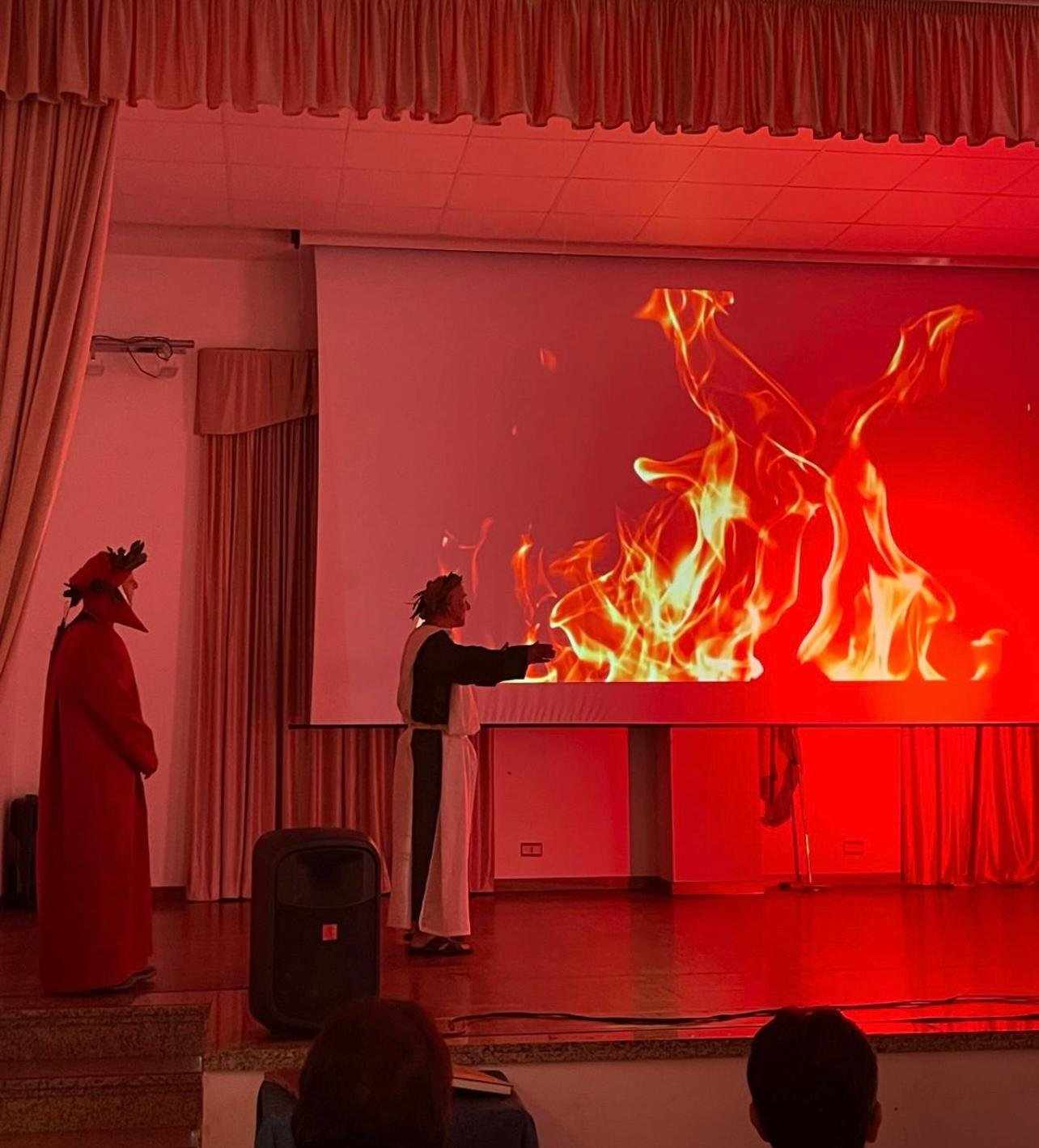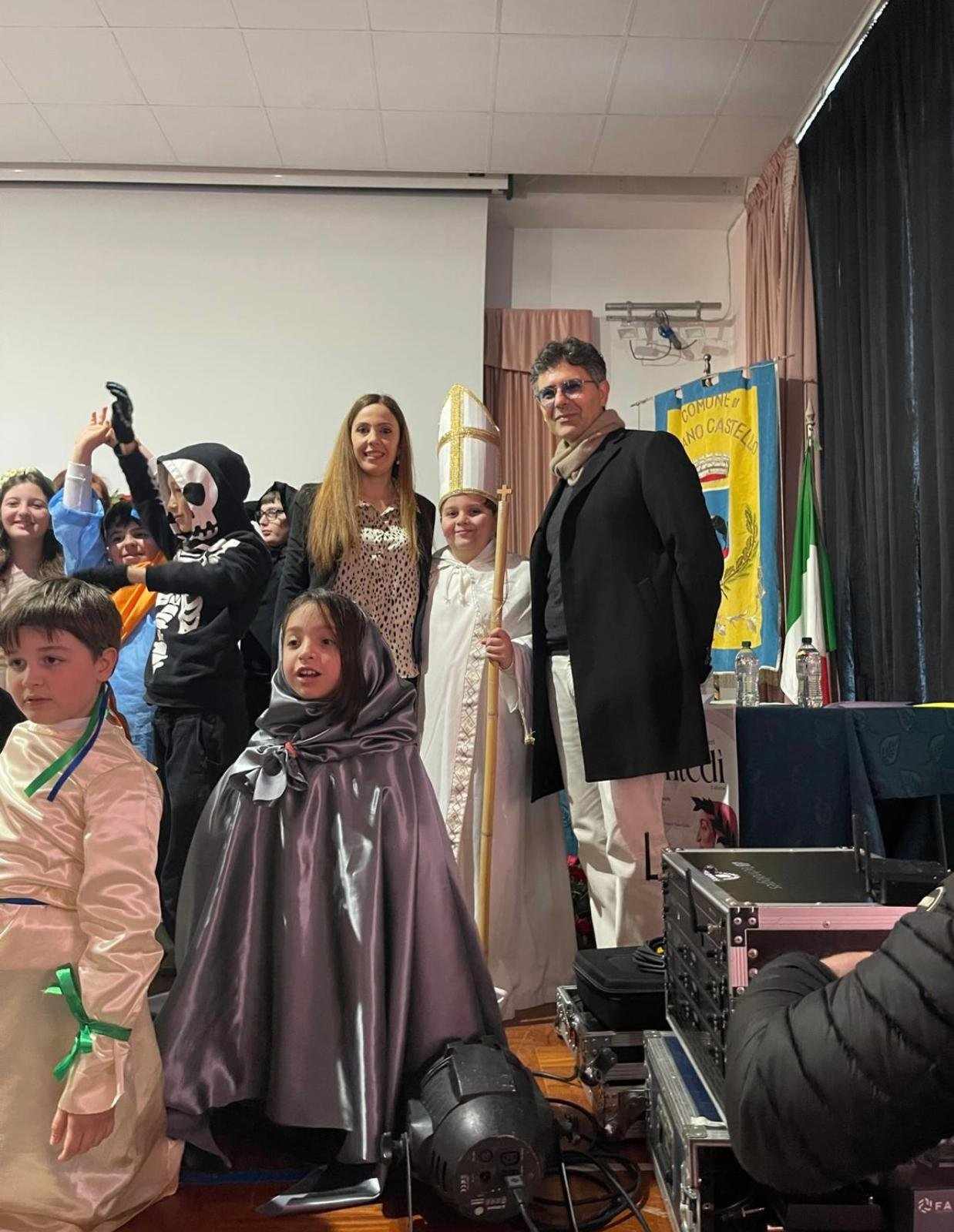 Un momento che ha scaldato i cuori di tutti è stata la rappresentazione realizzata dai bambini della scuola elementare e dagli studenti del Liceo Classico “Gioacchino da Fiore” di Rende, diretti con passione e dedizione dai loro docenti. Le maestre della scuola primaria hanno guidato i più piccoli in questo viaggio straordinario attraverso la Divina Commedia, facendo scoprire loro il fascino dell’opera dantesca in modo giocoso e coinvolgente. Un ruolo speciale lo ha avuto la maestra Sonia Trotta, che con grande professionalità e amore per l’insegnamento ha reso possibile una rappresentazione intensa ed emozionante. I bambini, con il loro entusiasmo e la loro spontaneità, hanno regalato uno spettacolo unico, dimostrando che la grandezza di Dante può essere vissuta anche dai più giovani.