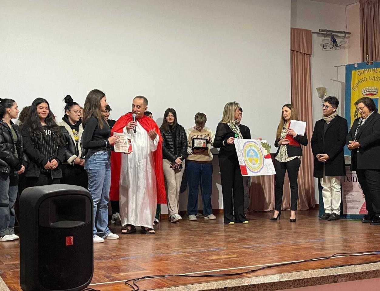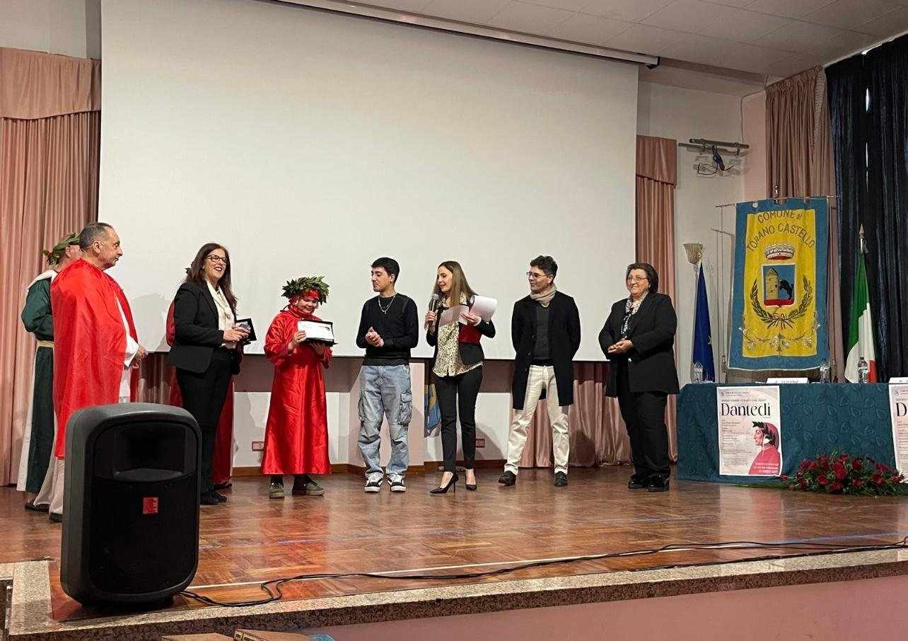 L’evento si è concluso con un momento altrettanto significativo: la premiazione del secondo concorso letterario Dantedì, che ha coinvolto gli studenti delle scuole locali in una riflessione profonda sul grande poeta.