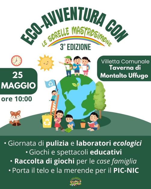 Con entusiasmo le sorelle Mastrosimone annunciano la terza edizione di “Eco-Avventura”, il 25 maggio alle 10:00 presso la villetta comunale di Taverna di Montalto Uffugo
