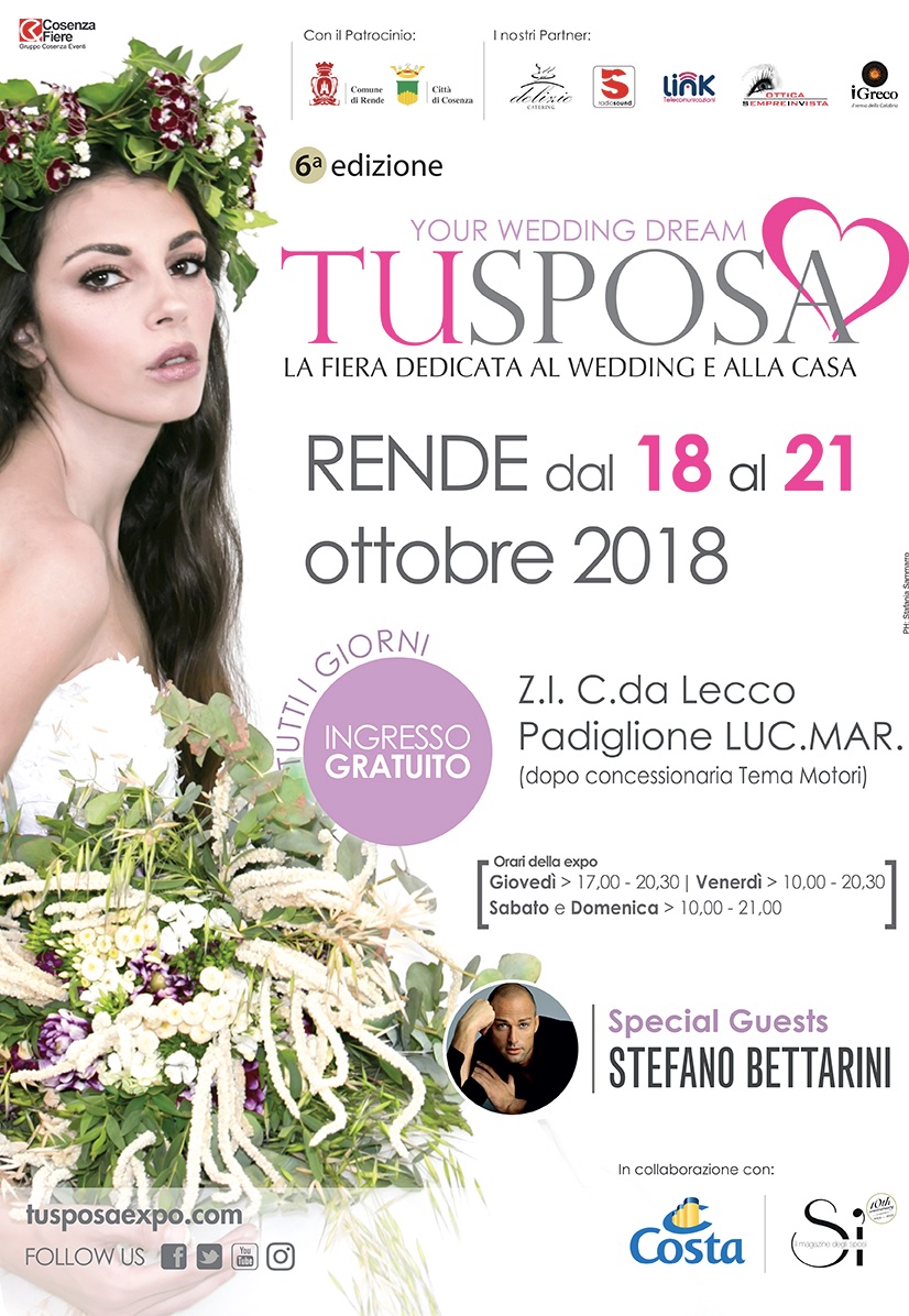 “Si svolgerà dal 18 al 21 ottobre, a Rende, presso il padiglione Lucmar (zona industriale), la sesta edizione di Tusposa, la grande rassegna sul wedding organizzata da Cosenza Eventi.