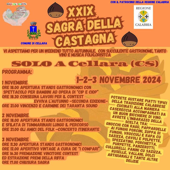 Anche quest’anno torna a Cellara, piccolo Borgo a 20 km a sud est di Cosenza, la tradizionale Sagra della Castagna 1/2/3 novembre