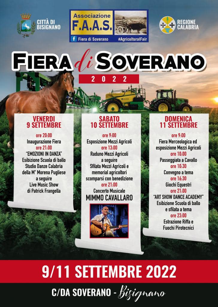 La Fiera di Soverano è un evento con profonde radici nella storia del città di Bisignano e di tutta la Valle del Crati. Sin dai tempi di Longobardi Bizantini questa Valle era conosciuta per la sua ricchezza e fertilità. Dai tempi più remoti della Contrada Soverano si allevavano i prestigiosi cavalli di Bisignano, attività che ancora oggi perdura per opera degli allevatori locali.