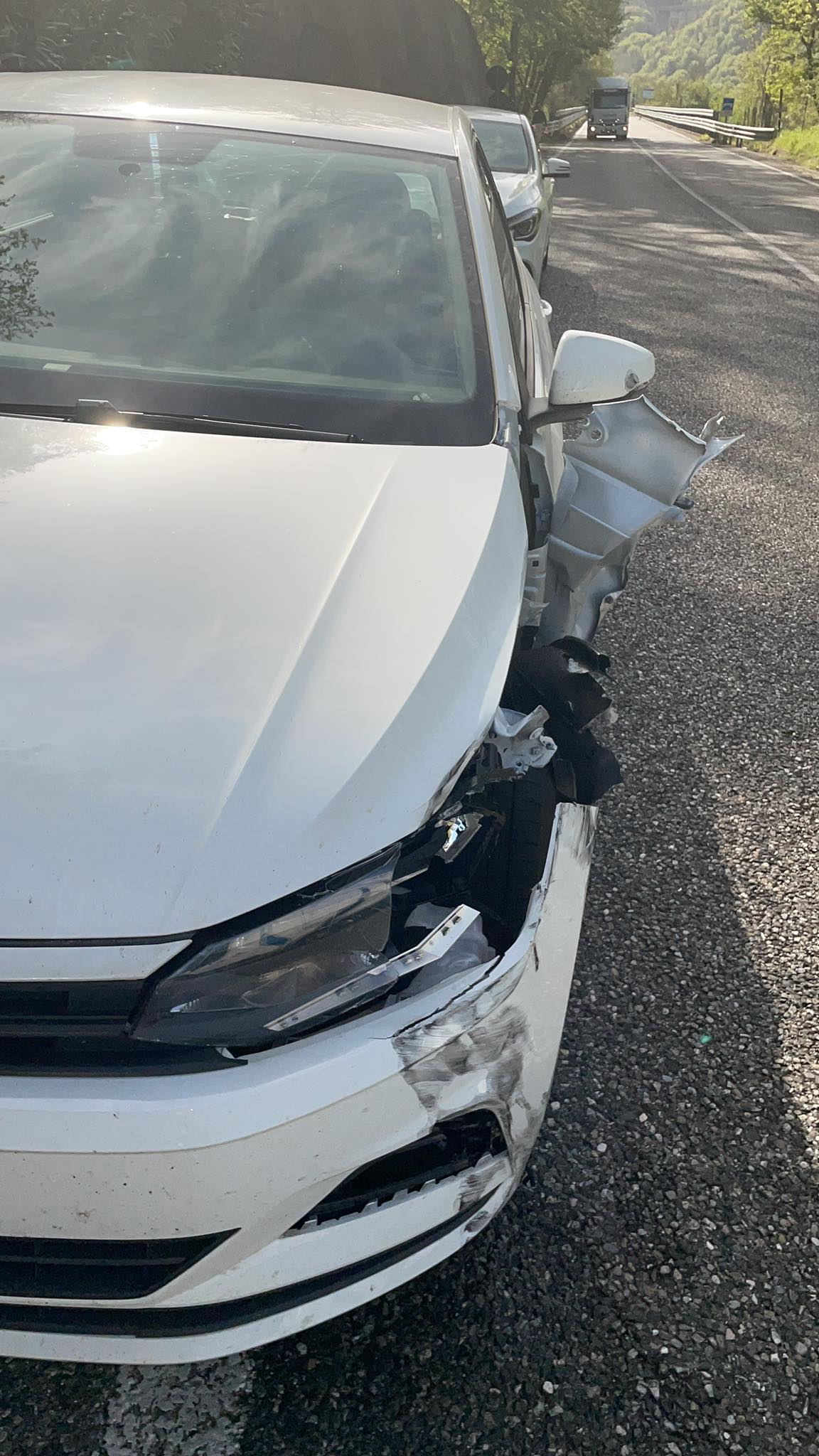 “Mi è andata decisamente bene… Queste sono le condizioni della mia macchina dopo aver impattato in settimana contro un giunto del ponte DEUDA 1 sulla SS107, dopo le gallerie gemelle in direzione Paola.