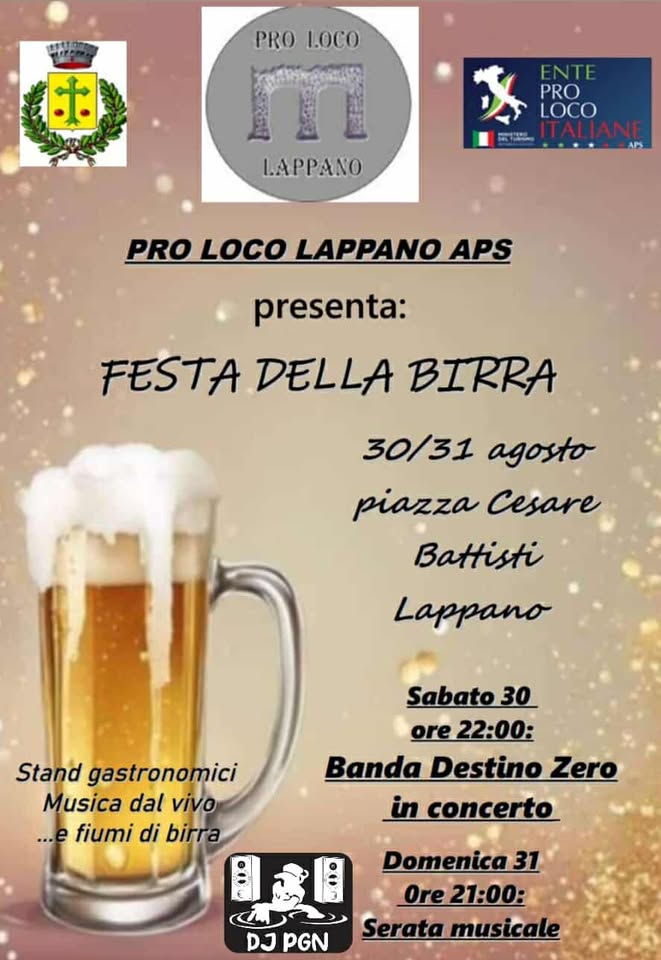 “Sabato 30 e Domenica 31 Agosto, Piazza Cesare Battisti a Lappano si trasformerà in un paradiso per gli amanti della birra e della buona musica! 🎶