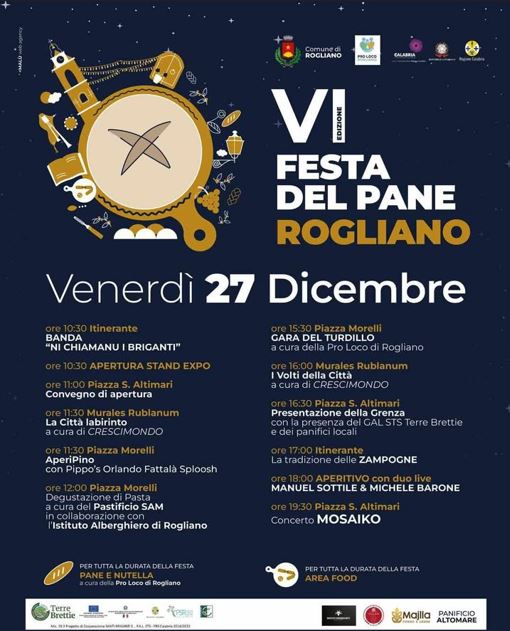 La tradizionale Festa del Pane di Rogliano quest’anno sarà caratterizzata dal clima natalizio e ci accompagnerà nei profumi della tradizione, immersi nel meraviglioso centro storico della città.