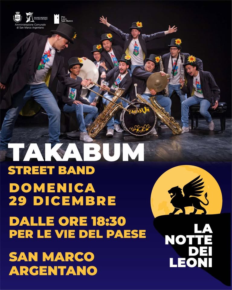 TAKABUM – La street band animerà le vie del paese a partire dalle 18:30