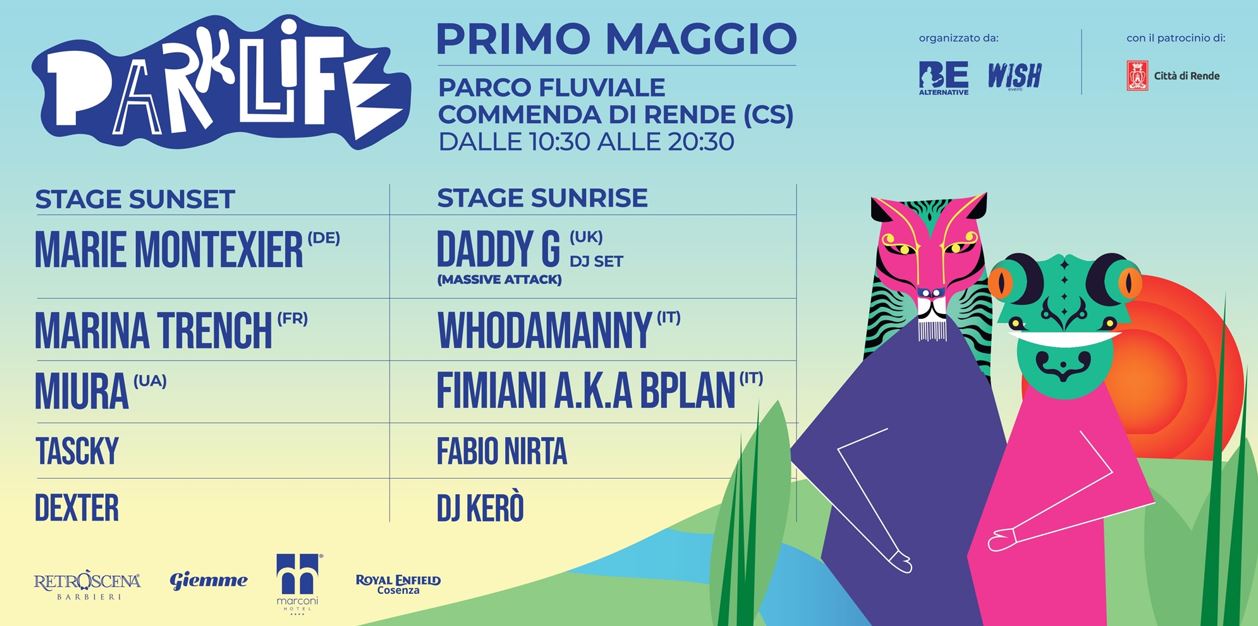 Da Napoli arriva inveceWhodomanny, figura centrale della label Periodica Records, uno dei visionari esploratori del funk elettronico in Italia. I suoi set sono caleidoscopici, rétro-futuristi, un mix di boogie, space disco e house funk d’impronta analogica.A Parklife anche Fimiani akaBplan, conosciuto per il progetto BPlan&Fab_o, tra i talenti più attivi del sud Italia,oggi con il nuovo moniker, propone una fusione raffinata di house, garage e acid groove. Su entrambi i palchi poi, come consuetudine, spazio anche ad alcuni tra i migliori dj local: Fabio Nirta, DJ Kerò, Dexter e Tascky.