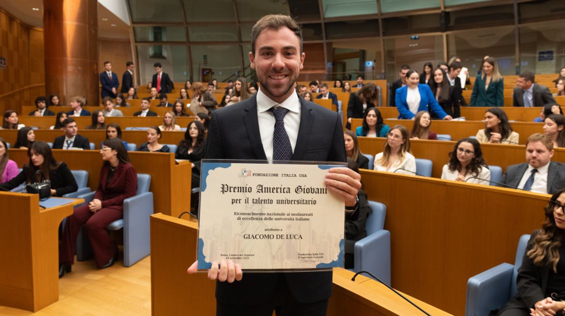 Mercoledì 18 Settembre ha avuto luogo una cerimonia ufficiale di premiazione a Roma presso la Camera dei Deputati, durante la quale il giovane Giacomo De Luca ha avuto l’onore di ricevere il “Premio America Giovani” al talento universitario conferito dalla fondazione Italia – Usa
