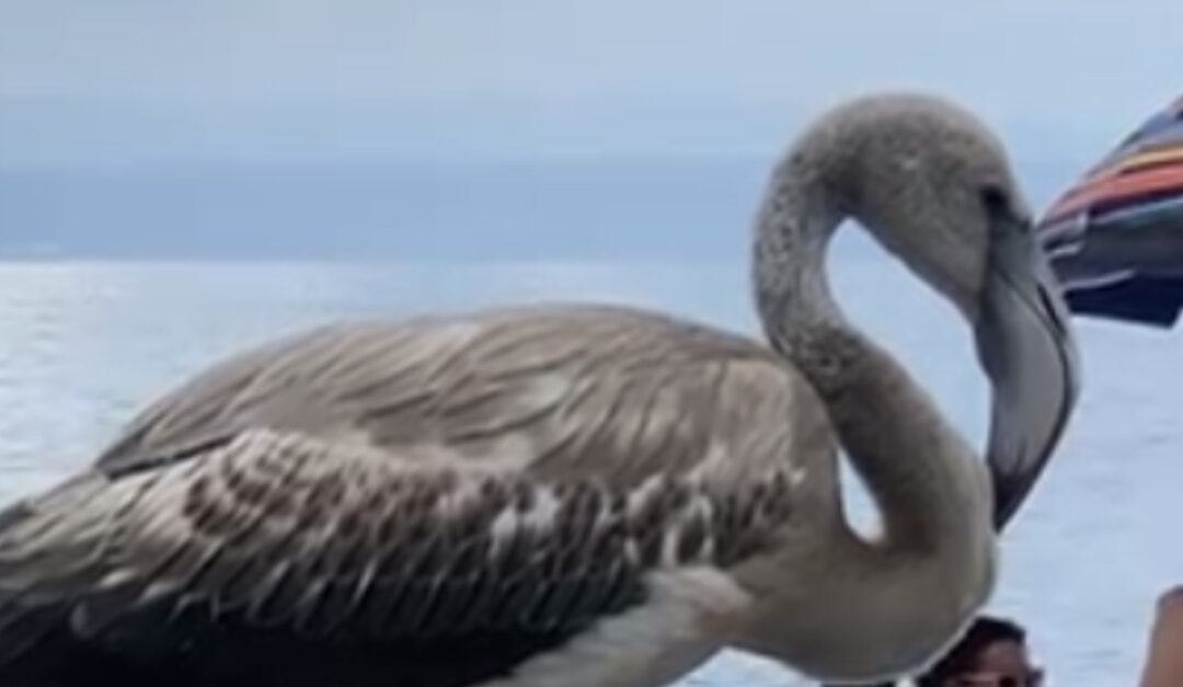 Un’esperienza davvero unica quella provata da alcuni villeggianti che verso le 11:45 hanno avvistato un fenicottero rosa planare in volo sulla spiaggia