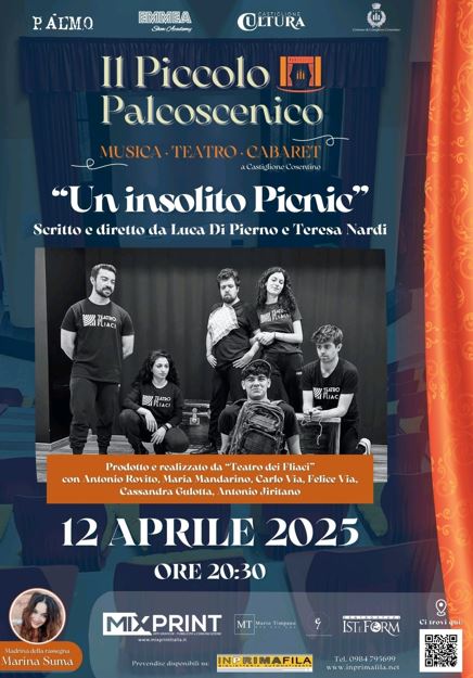 Cala il sipario rassegna “Il Piccolo Palcoscenico”. Sesto e ultimo appuntamento, sabato 12 aprile, alle ore 20:30, sul palcoscenico del Teatro “Il Piccolo” di Castiglione Cosentino, con una produzione Teatro dei Fliaci, dal titolo “Un insolito picnic”