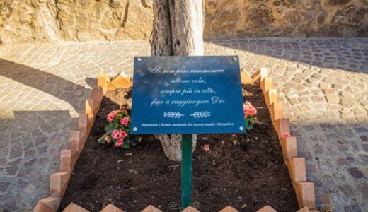 Un ulivo che rappresenta la vita eterna con una frase impressa su di una targa che ha un enorme significato: “Se non puoi camminare allora vola, sempre più in alto, fino a raggiungere Dio.