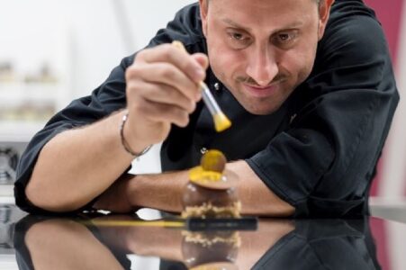 “Alberto Vitaro inizia a lavorare da giovanissimo nelle cucine di grandi ristoranti e capisce che l’arte del dolce è la sua vera passione.”