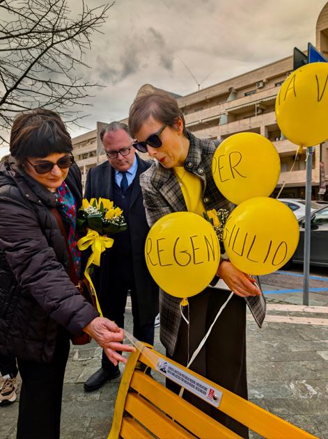 La donazione della panchina gialla – decorata per l’occasione con palloncini, anch’essi gialli con la scritta “verità per Giulio” – è un’iniziativa del Punto Giallo del Bazar “Mille Idee” di Arcavacata e del suo titolare: Luca De Luca.