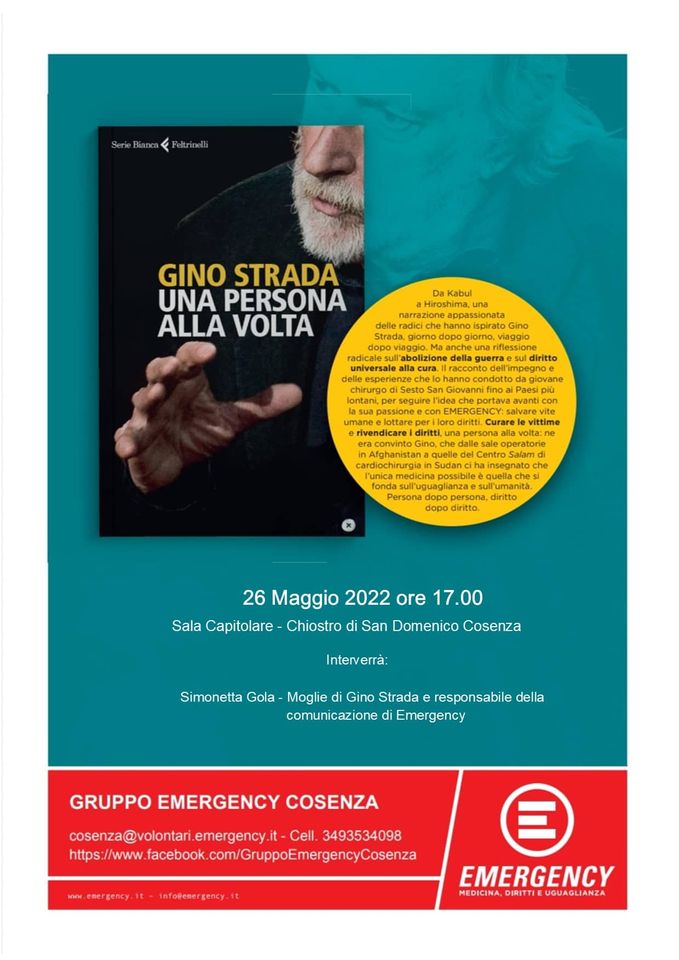 All’evento sarà presente la moglie di Gino Strada, Simonetta Gola, curatrice del volume e responsabile della comunicazione di Emergency.