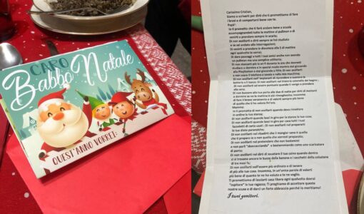 Questa volta sono stato io a mettere la letterina di Natale sotto il piatto di mio figlio che ha 17 anni, promettendo i nostri buoni propositi da genitori.