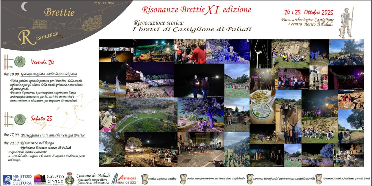 Risonanze Brettie si deve all’amore nutrito dall’architetto Corrado Fonsi, che ne è ideatore e Direttore artistico, verso il patrimonio culturale straordinario costituito dall’antico abitato fortificato di Castiglione di Paludi, un tempo proprietà dei suoi antenati: “Da paludese ho sempre sentito forte il legame con questo pezzo importante di storia, dal quale non possiamo staccarci e che va conosciuto sempre più. Sin dalla prima edizione, l’obiettivo di Risonanze Brettie è statala valorizzazione di un luogo che racconta il passato di questa terra facendolo diventare palcoscenico di performance culturali e artistiche. Anche quest’anno, grazie a efficaci collaborazioni istituzionali e scientifiche e al contributo erogato dal Ministero della Cultura, Fondo nazionale per la rievocazione storica, ottenuto grazie all’impegno della Dott.ssa Tina Guglielmello e dei funzionari del Comune di Paludi, è stato possibile ampliare l’offerta culturale, disegnando un programma diversificato, che coinvolge insieme abitato antico e centro storico attuale, estendendone la durata. Sarà una due giorni che interesserà il Parco archeologico di Castiglione, il Museo Civico e il centro storico di Paludi attraverso attività diversificate, con un programma declinato sulla valorizzazione e il racconto delle peculiarità culturali, archeologiche, artistiche, musicali, gastronomiche del territorio.