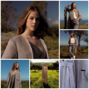 L’azienda calabrese Malìa Lab, di una giovane stilista, Flavia Amato, con sede a Guardavalle (Catanzaro), che opera nel campo della moda sostenibile con una linea di capi in tessuti con fibre naturali confezionati a mano, ha invece disegnato e realizzato i due prototipi di abiti per donna, un trench e una tuta palazzo.